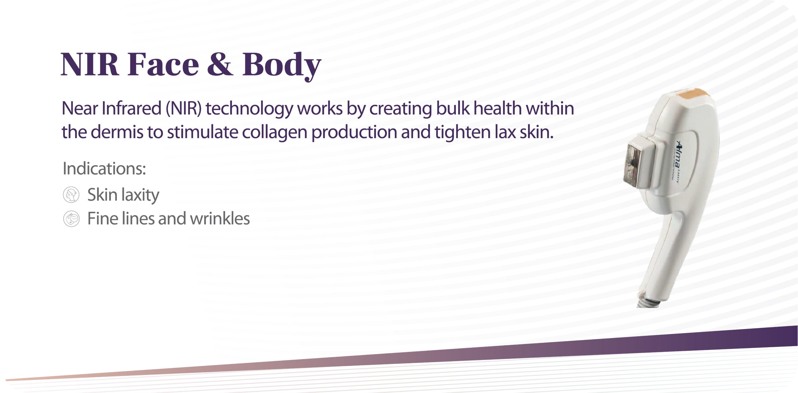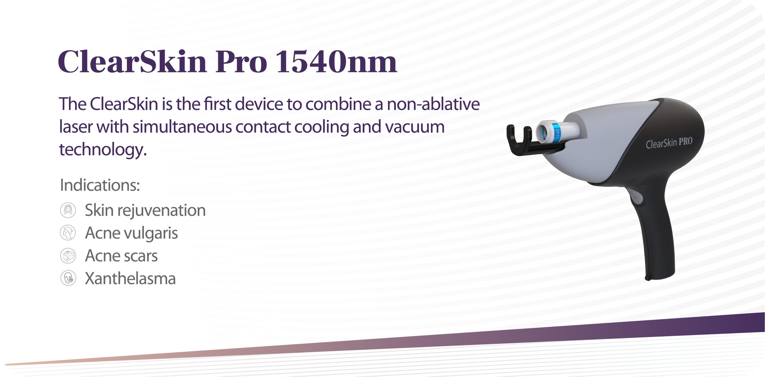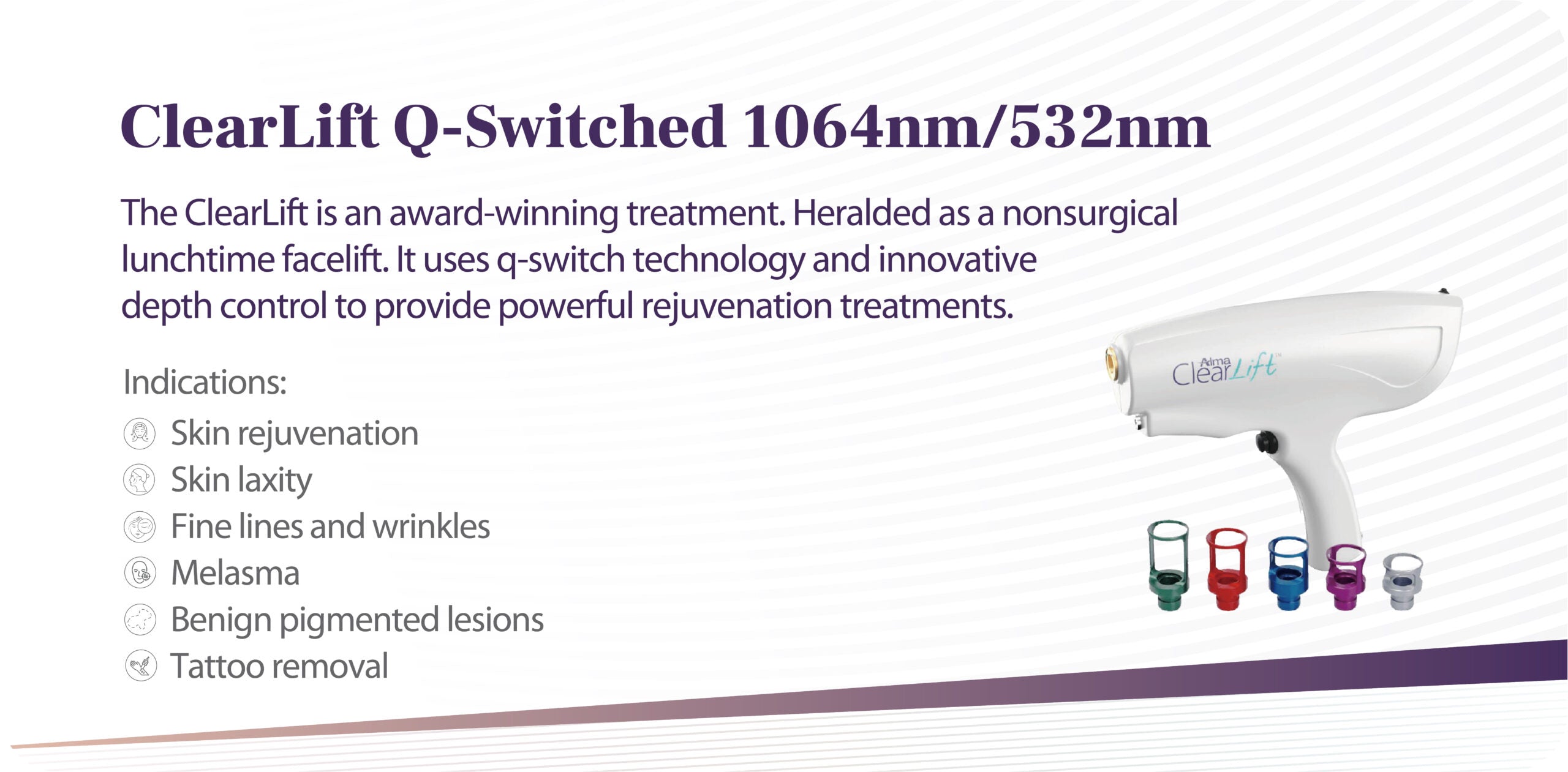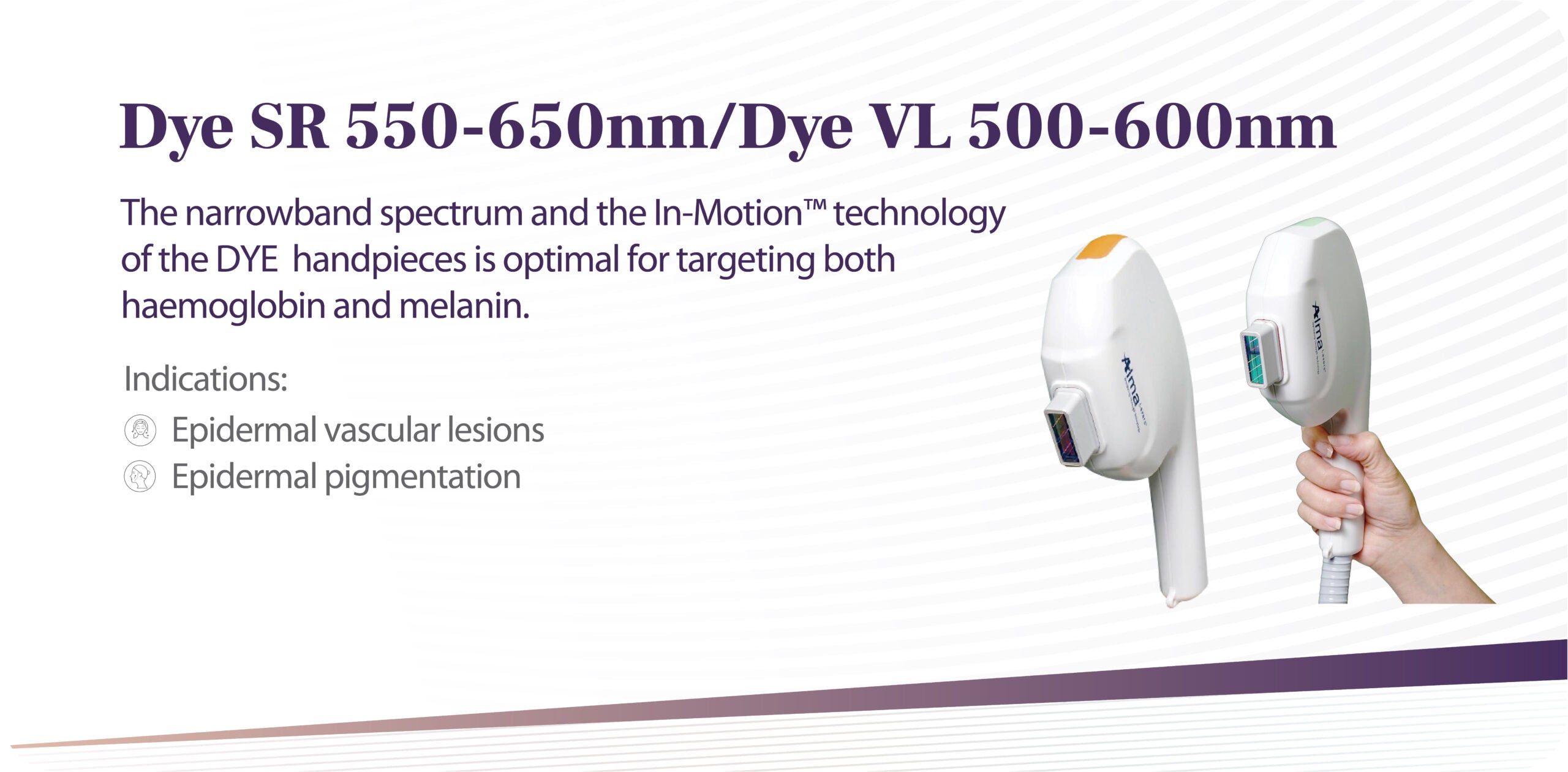 New innovations include depth control to precisely target different layers of the tissue, a fractional q-switch laser, multi-colour tattoo removal, unique In-MotionTM technology for enhanced IPL/DPL safety profile, and a revolutionary acne treatment combining laser with vacuum technology.