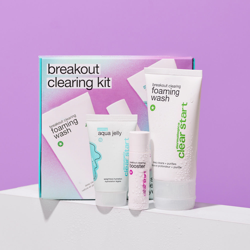 Achieve your clearest, healthiest-looking skin with this 3-piece Clear Start Breakout Clearing Skin Kit. Active ingredients and gentle botanicals work synergistically to fight breakouts without over-drying skin. Cleanse away dirt and excess oil with Breakout Clearing Foaming Wash. Clear breakout-causing bacteria in 15 minutes with NEW Breakout Clearing Booster. Use Cooling Aqua Jelly Moisturiser to relieve dryness and discomfort.