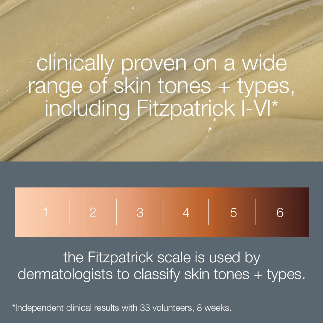 At-home peel helps visibly lift surface hyperpigmentation – including UV-induced dark spots, post-blemish marks, and melasma. Inspired by professional chemical peels, this fast-acting formula with an AHA + PHA blend including Mandelic Acid helps to quickly exfoliate away the appearance of stubborn hyperpigmentation. A barrier-restoring Omega-3 blend derived from algae soothes and helps reduce triggers that lead to post-inflammatory hyperpigmentation. Brightening Tranexamic Acid and Niacinamide help even skin tone. Nourishing, antioxidant-rich Turmeric butter blend leaves skin feeling smoother and softer. Tested on a wide range of skin tones and types, including hyperpigmentation-prone.*